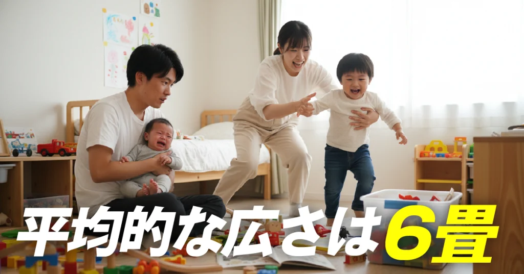 国土交通省の資料によると、子供がいる世帯の住宅面積は60〜80㎡、子供がいない世帯のは40〜60㎡の割合が大多数でした。つまり、子供の有無によって住宅面積の水準には約20㎡(約12畳)の差があります。子供が2人いる場合、一般的に子供部屋を2室用意する家庭が多いため、12畳を2つに分割した「1部屋あたり6畳」という数字が標準的な指標となるのです。