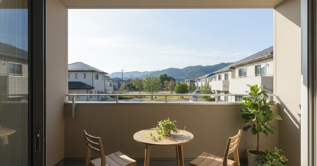 インナーバルコニーは建物内部に近く、壁や天井に囲われているため、外部環境の影響を抑えやすい構造です。完全な室内ではないものの、屋外に近い開放感を残しつつも外部からの視線を遮りやすく、室内と屋外の中間的な使い方ができます。